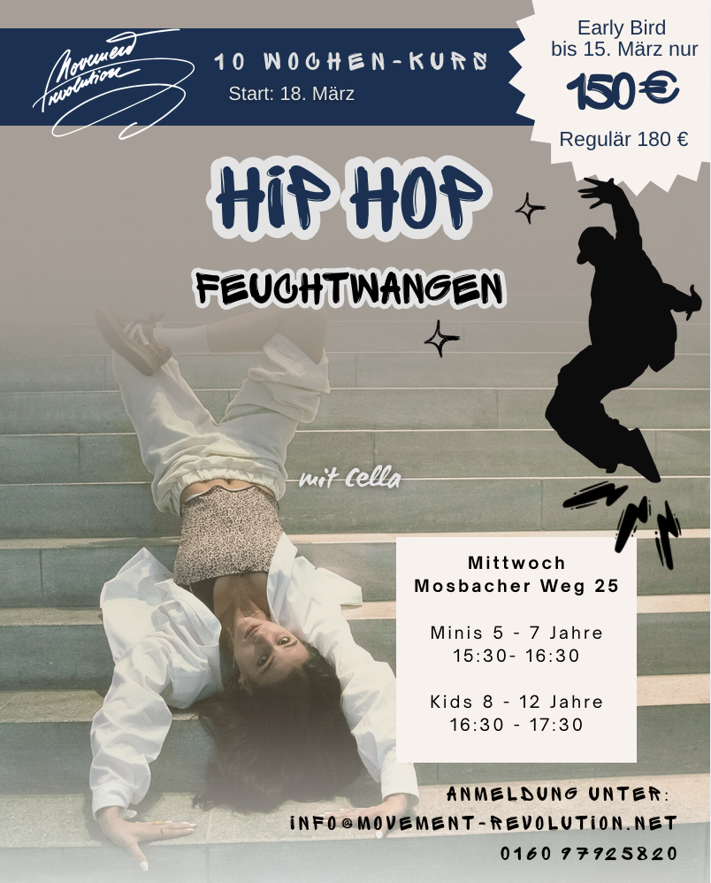 Ab dem 18. März findet im Sportheim Mosbacher Weg 25 ein 10-wöchiger Hip-Hop-Kurs statt. Anmeldungen unter: